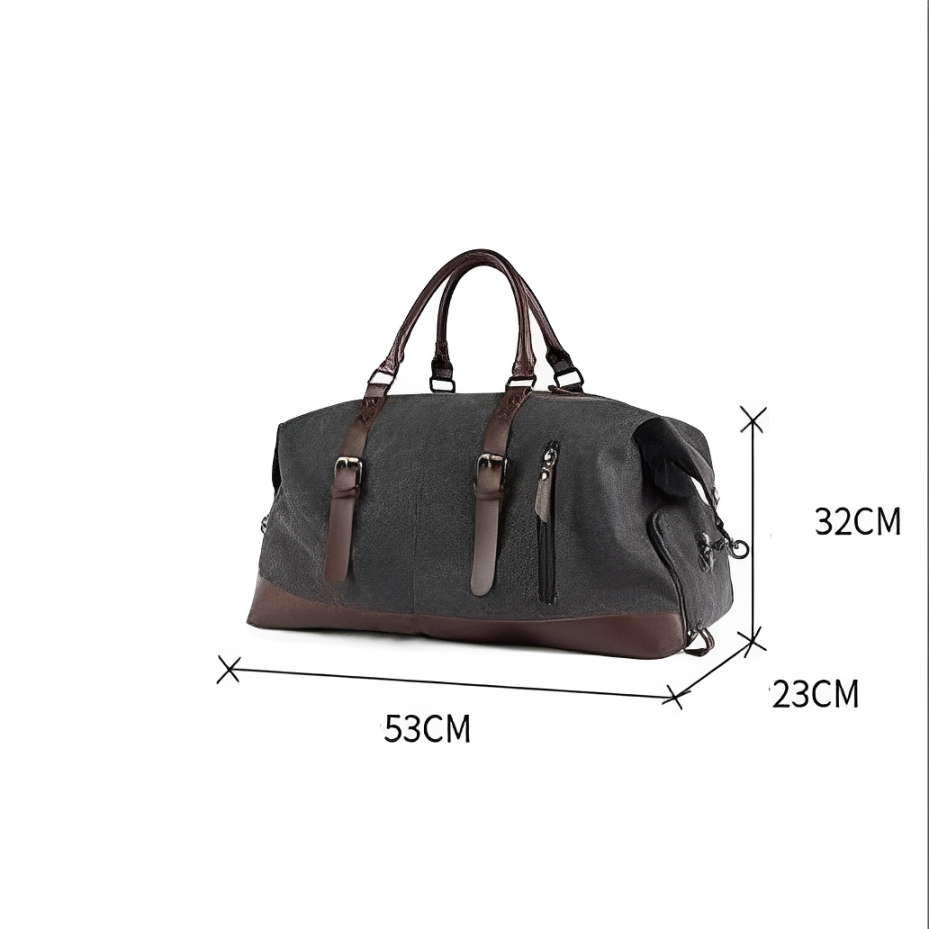 Perfectly suited for various uses—gym bag, travel luggage, or a daily carry-all—this duffle bag adapts to your needs. The self-contained zipper offers easy access to your essentials, while the rugged canvas and leather materials ensure it stands up to the demands of your adventures.